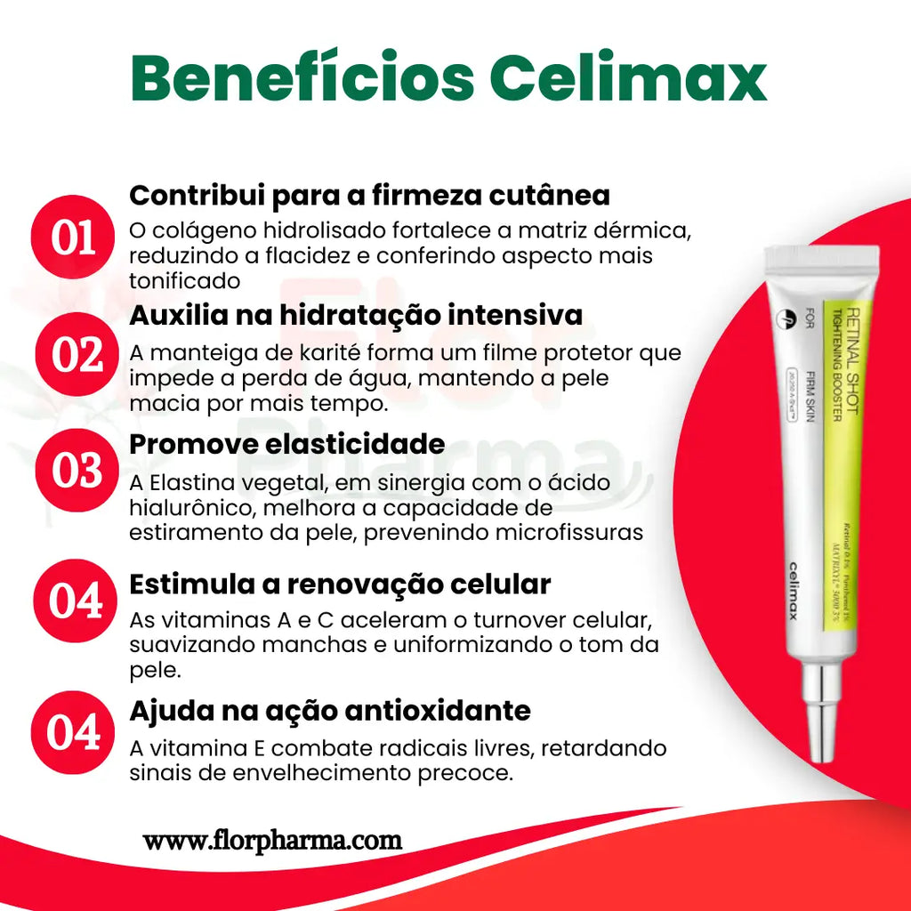 Pensando nisso, Celimax foi desenvolvido com dedicação para quem busca uma pele mais firme, hidratada e visivelmente saudável, valorizando o autocuidado de forma contínua e consciente.